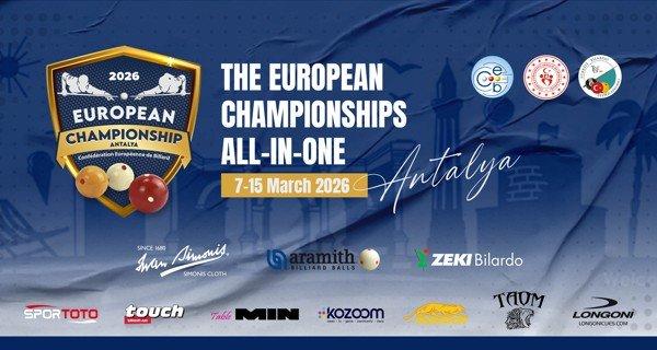 Turkin Antalyassa miesten, naisten ja U23 junioreiden EM-kilpailut (EPBF) Straight Pool 28.2.-1.3.2026 (miehet / naiset) 10-pallo 2.-4.3.2026 (miehet / naiset) 8-pallo 4.-7.3.2026 (miehet / naiset /…