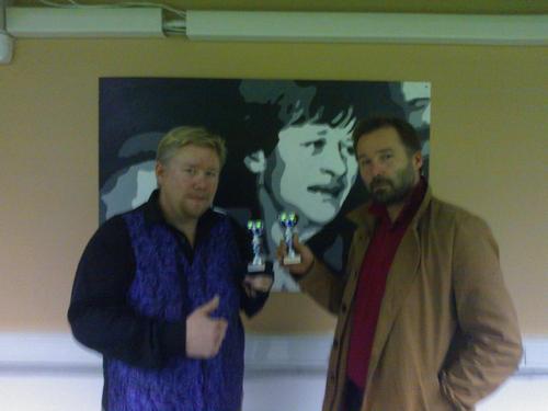 Sunnuntaina pelattiin Cup-pelit ja siellä nähtiin varsinaista sarjatulta lähinnä Veikkasen ja Nivan toimesta. Heikki Niva on palannut pelaamaan divarisarjaa, ja hän selvitti tiensä vaivatta lauantailta sunnuntaille. Sain kunnian nostella palloja kun Veikkanen tööttäsi kisojen suurimman breikin (77). Myös Niva teki 74 joten kovassa kunnossa on kaverit! Finaali käytiin Veikkasen ja Nivan kesken jonka Niva voitti luvuin 3-1.
