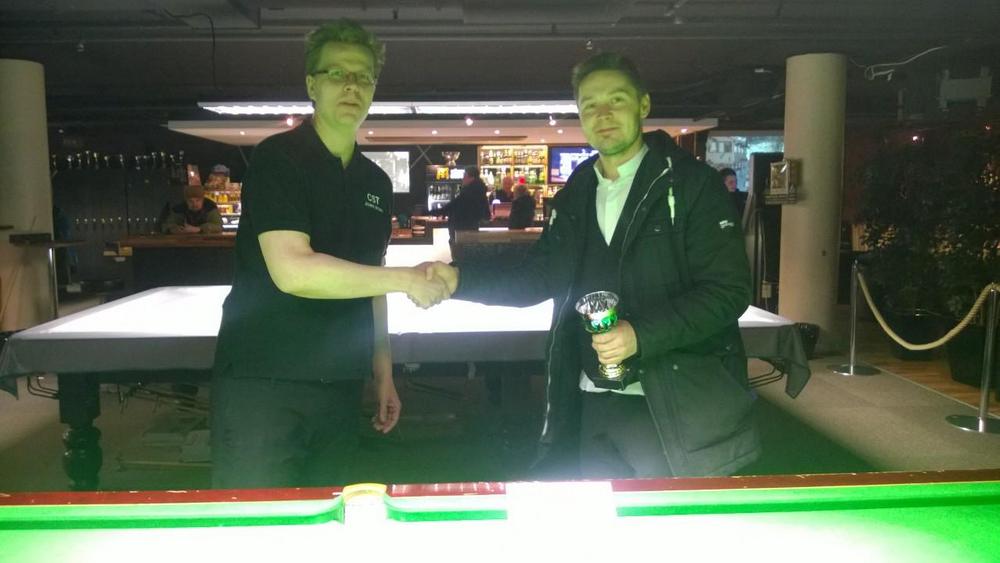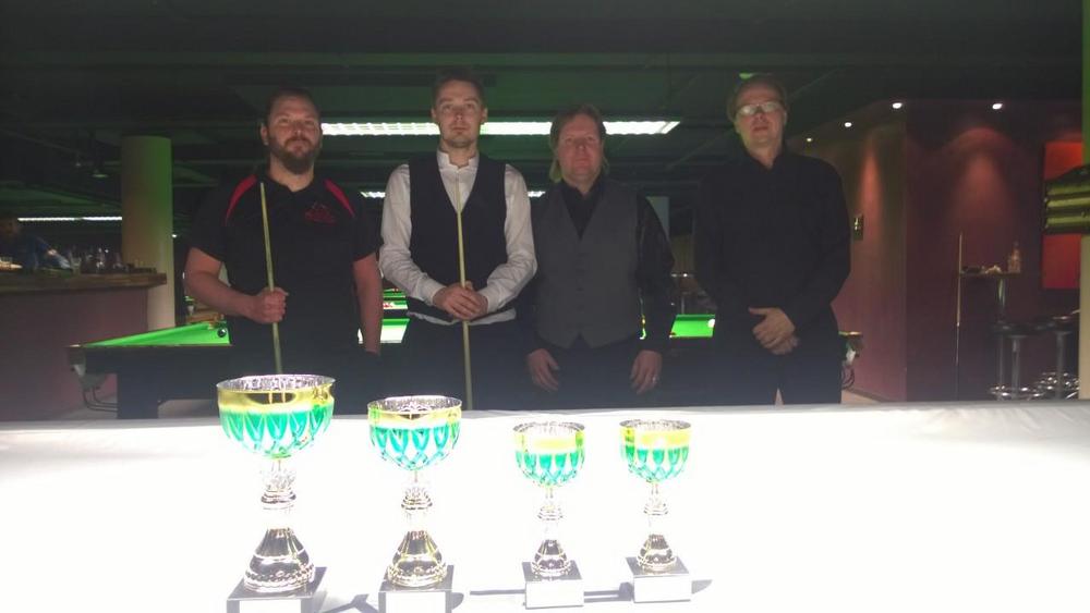 Osallistujia oli tällä kertaa vain 23, mihin osasyy oli influenssa- ja hiihtolomakausi. Muutama turkulainen juniori päätti hakea vauhtia divaripeleihin Puolan EM-kisoista, mutta suurimmalla osalla poisjäännin syy oli kiireet liittyä Paavo Väyrysen uuteen puolueeseen. Paikalle oli kuitenkin saatu satapäinen joukko CST:n väreihin pukeutuneita faneja, jotka pitivät tunnelmaa yllä lukuisin juomalauluin ja kannustushuudoin. Olipa paikalle tuotu rytmiryhmäkin ja fiilis oli kuin TuTo:n matsissa. Ehdotankin tässä snooker teamille, että jokaiselle pelaajalle voisi asettaa vaatimukseksi sisääntulomusiikin. Näin saadaan mukava tunnin lisäviivästys jokaisen turnauksen alkuun. Itselleni voisi sopia Martti Servo & Napanderin ”Tein sen mihin näillä lahjoilla pystyin”.