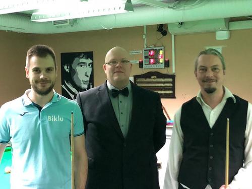 Toisella puolen kaaviota nähtiin pari kiihkeää kamppailua heti aamutuimaan. Lahtelaisten keskinäisessä mittelössä Leevi Koskinen voitti 3-2 Ilkka Ilomäen jännässä ottelussa. Sitäkin kuumempi ottelu oli CSS:n Ahmed Al-Ameerin ja raumalaisen Tuukka Miettisen taisto kuutospöydällä. Allekirjoittanut todisti viereisellä pöydällä montakin kiihkeää väittelyä säännöistä ja virheistä. Oli keppien ruuvaamisia ja luovutuksen peruutuksia ennen uusintamustaa jne. No loppujen lopuksi Tuukka sai käännettyä sisäisen kiukun voimavaraksi pelaten upean kontraerän. Seuraavalla kierroksella Tuukka tiputti Leevi Koskisen ja semifinaalissa LaSno:n Marko Peltoniemen, jolle paikka semifinaalissa oli jo kauden toinen.