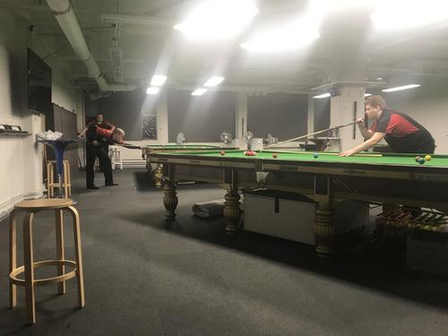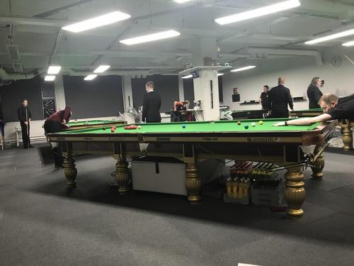Lahdessa järjestettiin salin ensimmäiset divisioonakisat ja jännityksellä odotimme, kun osallistujamäärä kasvoi jopa 35:een snookeristiin. Neljän pöydän salilla tämä tarkoitti luonnollisesti suoran cupin formaattia sekä bo5 pelejä. Kisajärjestäjät joutuivat miettimään ratkaisuja suureen pelaajamäärään sekä salilla pelivuoroaan odottavien pelaajien mahduttamiseen pienelle salille. Siirsimme sohvaryhmän salin nurkasta käytävän puolelle, jonne muodostuikin lauantain aikana iloisella puheensorinalla varustettu ryhmä pelejä odottavia sekä jo kisoista pudonneita pelaajia. Samaan aikaan salilla pelaavat kisaajat saivat hieman paremmin keskityttyä kisasnookerin pelaamiseen. Murphyn (Shaun?) laki kuitenkin tuli ohuesti sotkemaan kisajärjestäjiä, kun yhden tulostaulun kaukosäädin alkoi elää omaa elämäänsä sekä salin oven sarana päätti myös alkaa äänekkäästi naristen valittamaan aina ovea aukoessa.