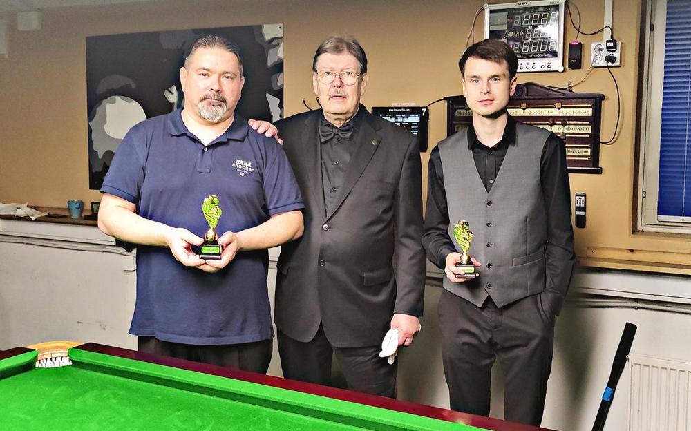 Finaalia lähdettiin pelaamaan muista otteluista poiketen kolmeen voittoon ja pelaajat pääsivät keskittymään täysin omaan tekemiseensä Erik Lindblomin ottaessa ohjakset tuomitsemisesta. Järvi oli ahertanut koko päivän pitkiä otteluita, kun taas Pirilä selvitti tiensä finaaliin nopeasti ja häviämättä erääkään. Ensimmäisessä erässä Järvi oli pitkään takaa-ajoasemassa, kunnes Pirilä haki hienon ratkaisun viimeisestä punaisesta alkaneella 28 pisteen sarjalla, eron ollessa 49 pistettä ja pöydällä enää 13. Toisen erän alkuasetelma vastasi hyvin pitkälti ensimmäistä. Lopulta Pirilä haki eroa tekemällä viimeisellä punaisella snookerin ja sai tästä useamman missin, kunnes Järvi sai osuman josta jäi kuitenkin Pirilälle helpohko punainen. Punainen huolellisesti koppaan ja varmistus 27 pisteen erolle pöydällä ollessa jäljellä värit. Muutaman turvalyönnin jälkeen Pirilä viimeisteli erän keltaisella, vihreällä ja ruskealla pistein 51-18. Kolmannessa erässä Järvi lähti ensimmäistä kertaa karkuun ja monessa kohtaa näyttikin tulevalta kavennukselta, mutta Pirilä keräsi pikkuhiljaa pisteitä ja kohta peli olikin tasoissa ja lopulta Pirilän pienoisessa johdossa, kun pöydällä oli enää värit. Hetken pallottelun jälkeen Pirilä pussitti ruskean ja varmisti vielä sinisellä erän, ottelun ja turnauksen voiton 12 vuoden kisatauon jälkeen. Lopulta tuomari Lindblom merkkautti pöytäkirjaan pisteet 53-37 ja erät 3-0, tarkoittaen Kera Snookerin Pirilälle puhdasta 7-0 tulosta päivän otteluista ja samalla häviötöntä turnausta. Hieno päivä ja kamppailu myös Kokkola Snookerin Järveltä aivan loppuun saakka!