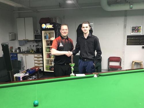 Finaali alkoi sunnuntaina vähän aamukymmenen jälkeen. Tiihonen aloitti vahvasti vieden ensimmäisen erän reilusti, mutta Savolainen vastasi heti samalla mitalla seuraavaan erään tilanteen ollessa nyt 1-1. Kolmannessa erässä Patrik näytti taas vahvuutensa tehden kaksi listabreikkiä kolmanteen erään. Tässä vaiheessa myös muutamia lahtelaisia snookeristeja oli herännyt ja tullut salille seuraamaan finaalia ja tätä jyväskylän nuorta ihmemiestä. Tiihonen vei seuraavankin erän reilulla piste-erolla, mutta Savolainen onnistui viemään 5. erän. Lopulta 6. erä meni kuitenkin Tiihoselle ratkaisten nuorelle miehelle jo kolmannen rg voiton tällä kaudella. Onnittelut taas kerran Patrikille!