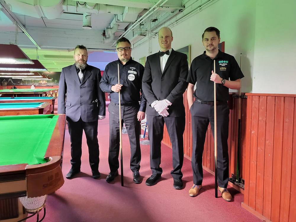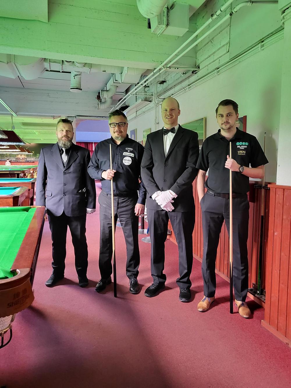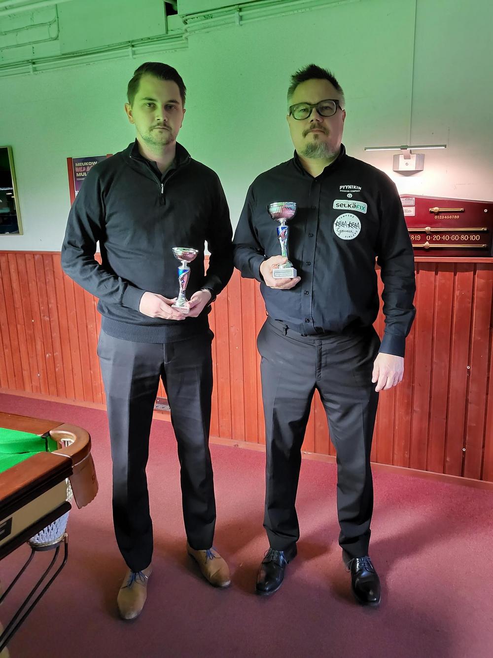 Sunnuntain semeissä Timo Salovaara sai taipua Patrik Tiihoselle luvuin 4-1 ja Ville Pirilä samoin luvuin Jani Kanaselle. Finaalissa siis kohtasivat kisojen ehkäpä kaksi suurinta ennakkosuosikkia ja luvassa oli uusintaottelu kaudenavauksesta Espoosta kuukauden takaa. Finaalissa eriä vaihdettiin tasatahtiin Tiihosen siirryttyä ensin 1-0, 2-1 ja 3-2 johtoon, kunnes Kananen sai tasoitettua kolmeen kolmeen. Katkaisuerässä Kananen teki hienon 56 pisteen sarjan käytännössä ensimmäisestä paikasta ja sai revanssin Espoosta. Vahva alku kauteen molemmilta pelaajilta! Peliolosuhteet City Biljardissa eivät ole olleet näin hienot miesmuistiin ja siitä tuli pelaajilta runsaasti kiitosta. Myös kilpailuorganisaatio sai kehuja Minna Kekkosen uurastettua jälleen väsymättä kisakansliassa ja tuoreiden tuomareiden Timi Myllyaho, Sami Liimatainen ja Rauno Kesseli tuomitessa matseja oikein urakalla. Oulun Mr. Jokapaikanhöylä Antti Hiltunen oli jälleen pyyteettömästi laittamassa pöytiä molempina aamuina unisimpien vielä halatessa tyynyään. Iso kiitos taas panoksesta!