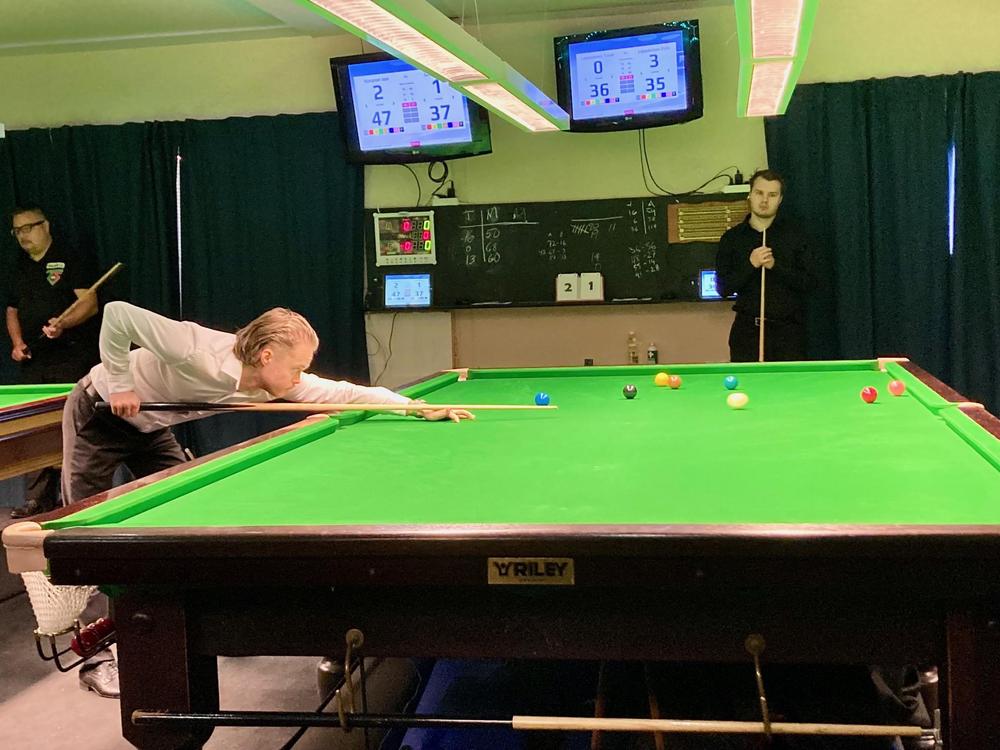 Jirka Maaranen voitti Pertti Salon 4-1. Viimeisessä erässä ei herunut siimaa vaan Maarasen peräkkäiset breikit veivät hänet yli 60 pisteen johtoon. Sen lisäksi upea pitkä punainen antoi kuoliniskun vastustajan voittohaaveille.