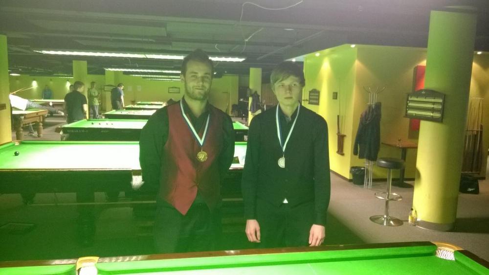 Turussa kilpailtiin viikonloppuna suomalaisen biljardihistorian ensimmäinen snookerin six reds SM-kilpailu. Osallistujia oli mukava määrä, ja lauantaina kisaamaan lähti kaikkiaan 28 pelaajaa. Suurempia yllätyksiä ei lauantaina nähty, ja sunnuntain 8-cupiin tiensä selvittivät tutut pelurit, eli Tony Silvan, Jarno Sillvan, Antti Mannila, Saku Veikkanen, Olli-Pekka Virho, Jyri Virtanen, Harri Helminen ja Juha Lehto. Allekirjoittaneen mielestä kisojen upein suoritus nähtiin sunnuntaina, kun Tony Silvan nousi 5-4 voittoon Harri Helmisestä ollessaan jo 2-4 perässä, ja tarvitsi yhden snookerin seitsemännessä framessa. SM-mitali oli Tonylle ensimmäinen, mutta ei varmasti viimeinen. Upea suoritus! Mannila oli kuitenkin vielä liian kova vastus Semi-Finaalissa Silvanille, ja Antti pelasi itsensä hienosti Finaaliin lukemin 5-0. Turkuun tuli myös toinen mitali, kun Olli-Pekka Virho pelasi itsenä Semi-Finaaliin voittaessaan Juha Lehdon lukemin 5-2. Toisessa Semi-Finaalissa vastakkain olivat Virho ja Veikkanen. Tasaisen varmasti pelannut Veikkanen pelasi itsensä Finaaliin voittaessaan Virhon lukemin 5-1. Finaalista kehkeytyi varsinainen trilleri, kun Antti Mannila pelasi itsensä upeasti 0-4 takaa-ajoasemasta tasoihin, ja lopulta vieden ottelun ratkaisun aina kontraan. Ottelu ratkesikin vasta mustan pelillä, ja Mannila osoitti rautaiset hermonsa pussittaessaan vaikean mustan kulmaan. Ottelu siis 6-5 Mannilan hyväksi, ja näin saatiin ensimmäinen six reds SM-kultamitalisti. Suuret onnittelut kaikille mitalisteille, ja kiitos kaikille kipailuun osallistuneille!