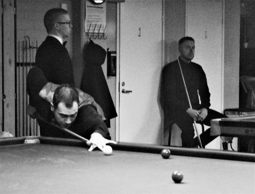 Aamupelissä kohtasivat Kimmo Saarinen ja Iiro Sirkiä. Molemmilla taisi olla vielä hieman unihiekkaa silmissä. Matsi oli tasainen Sirkiä lunastaessa finaalipaikan lopulta erin 4-3. Toisessa semissä kohtasivat Heikki Niva ja Robin Hull. Ottelu meni selvästi Hullille 4-0. Finaalissa Sirkiä sai napattua yhden erän Hullin viedessä voiton 4-1 tehden hienon 138 breakin. Kyseessä on Robin Hullille jo 13. Suomen mestaruus. Onneksi olkoon!