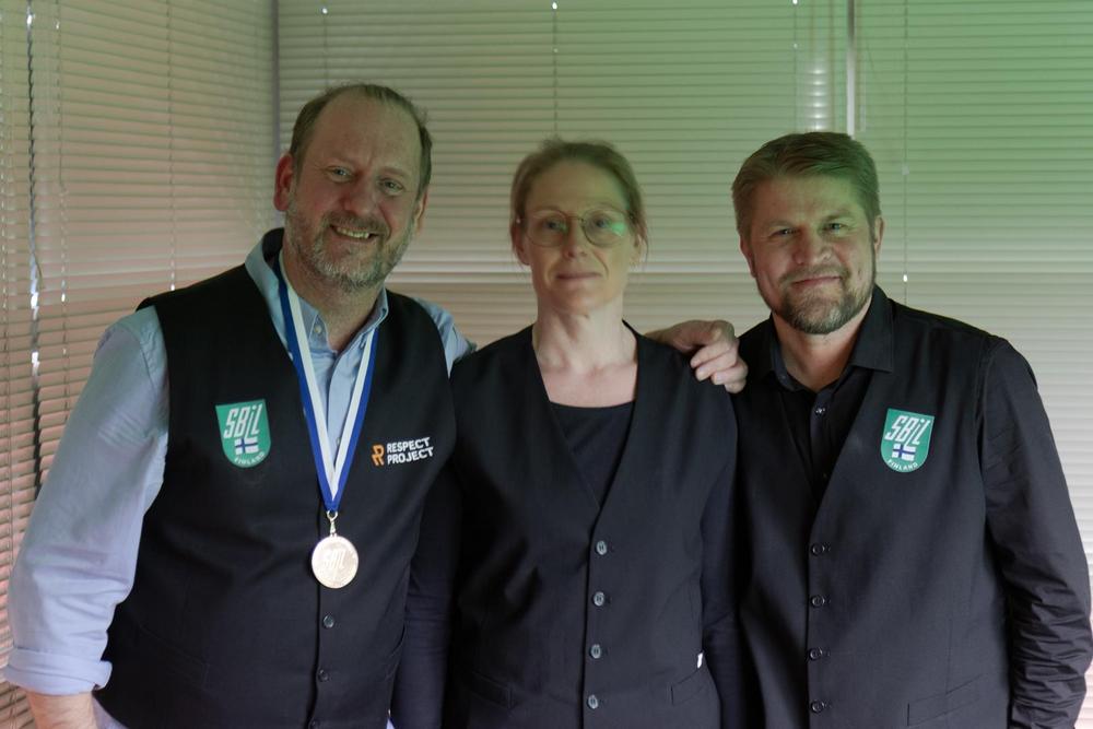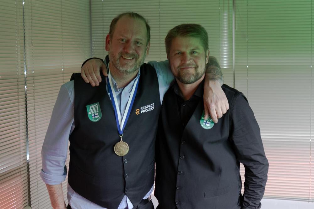 Onnittelut pronssimitalista Janne Häkkiselle ja Seppo Ojalalle, hopea mitalista Ville Pirilälle sekä sarjan Suomen mestaruudesta kultamitalin kera Tero Napparille.