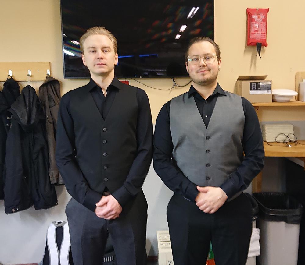 Ottelusta odotettiin valtaisaa nuorten miesten näytöstä matkalla kohti finaalikierroksia. Myös yleisöä saapui ottelua seuraamaan, mikä oli iloista nähdä. Ottelu alkoikin odotetusti, kun Halttusen karmealla ohilyönnillä oli seurauksena helppo paikka ja Tiihonen sekä Vuoristo naputtivat hyvän 39 pisteen sarjan. Ensimmäinen erä helposti heille. Toinen erä oli samanlainen vyörytys nuorelta kaksikolta, kun Halttusen ja Kuuselan tehdessä pieniäkin virheitä, tuli aina parinkymmenen pisteen rokotusta. Erä Tiihoselle ja Vuoristolle. Kolmannessa erässä sitten nähtiin kisojen ihmeellisimpiä hetkiä, kun Tiihonen ja Vuoristo alkoivat tehdä pieniä virheitä. Tämän enempää ei tarvitakaan, kun divarijyrä Halttunen ja monilajitaitaja Kuusela huomasivat mahdollisuutensa ja pistivät vanhan liiton grindauksen käyntiin. Oikeat lyönnit oikeaan paikkaan ja pahojen virheiden välttäminen auttoivat Halttusta ja Kuuselaa voittamaan kolmannen erän. Neljännessä erässä alkoi jostain syystä näkyä nuoren kaksikon pientä väsymystä ja pientä turhautumista, eihän tämän näin pitäisi mennä. Halttusella ja Kuuselalla tuurit olivat oikein kohdillaan ja paikkoja ei turvapelivirheistä tai ohilyönneistä jäänyt ja lopulta Tiihosen ja Vuoriston yrittäessä aina vaan vaikeampia pussituksia, tekivät Halttunen ja Kuusela tasaisesti pisteitä. Mentiin lopulta loppuväreille, jossa oli hyviä turvalyöntejä puolelta toiselle. Kuusela pelasi hyvän lyönnin mustalla ja Vuoristolla oli vaikea paikka, kuitenkin hyvällä tuurilla ja tuplaosumalla mustaan jäi kohdepallo turvaan ja Halttunen mietteliäänä ei jäänyt murehtimaan tuuriosumia vaan teki oivallisen turvalyönnin. Tiihonen vastasi vielä paremmalle lyönnillä ja Kuuselalla oli paha paikka. Mitään voittavaa turvalyöntiä ei tilanteessa tuntunut olevan ja Kuusela tekikin yleisön ihmeeksi aivan häikäisevän mustan, joka parin kannalta ihanasti kolahti takarautaan ja pussiin. Tilanne 2-2 ja nuoren parin ilmeet olivat ikuistamisen arvoisia. Kuitenkin tämä ei ole tuhkimotarina vaan kisaraportti SM-kisoista, joten todellisuus otti lopulta otteen ja toista pitkää matsia perättäin pelaamassa olleet Halttunen ja Kuusela alkoivat väsähtämään. Etenkin Halttusella alkoi tulla helppoja virheitä ja hänen etevin aseensa restipeli alkoi pettämään pahasti. Viides erä selvästi Tiihonen Vuoristo kaksikolle. Halttunen koitti tankata energiaa ja Kuusela koitti pitää pelin tiukkana. Kuudes erä alkoi tasaisesti ja Halttunen ja Kuusela alkoi tehdä kiriään, kunnes lähilyönti pinkkiin meni Halttusella vapinanykäisyyn ja pinkki liikkui ehkä kaksi senttiä - metrin sijaan. Tiihonen ja Vuoristo kiittivät avopaikasta ja tekivät oppikirjamaisen pistesarjan lähinnä pinkillä. Pistesarjaksi tasan 30. Halttunen ja Kuusela hakivat lopussa hetken aikaa kolmea snookeria ja saivatkin jo yhden, mutta lopulta Vuoriston epäonnistunut pussitusyritys menikin kahden vallin kautta keskelle ja yleisön riehaantuessa tuulettamaan, totesivat Halttunen ja Kuusela että oikea pari otti voiton ja kättelivät vastustajansa. Voitto siis 4-2 Tiihoselle ja Vuoristolle.