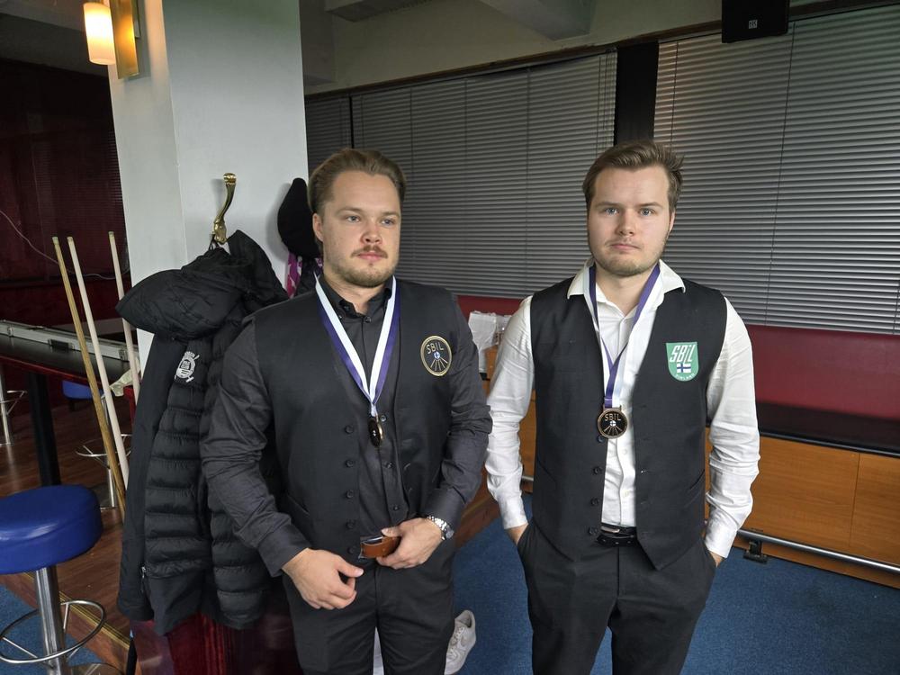 He onnistuivat ensiksi pussittamaan ruskean ja sinisen ja hetkeä myöhemmin Maaranen löi pitkän pinkin sisään. Sormunen pääsi yrittämään melko ohutta mustaa vihreän pussiin. Epäonnekseen musta pysyi pöydällä ja vieläpä jäi pussin suulle, josta Tiihonen ratkaisi ansaitun mestaruuden Jyväskylään. Oli hienoa nähdä nuoren Eino Vuoriston voittavan ensimmäisen SM-kultansa Patrik Tiihosen kanssa ja kuinka hän pystyi pelaamaan todella kovalla itsevarmuudella ja hienoilla pitkien pallojen pussituksella näyttämään , että häntä ei tarvinnut ”kantaa”, vaan hän teki oman osuutensa parina mestaruuden eteen.