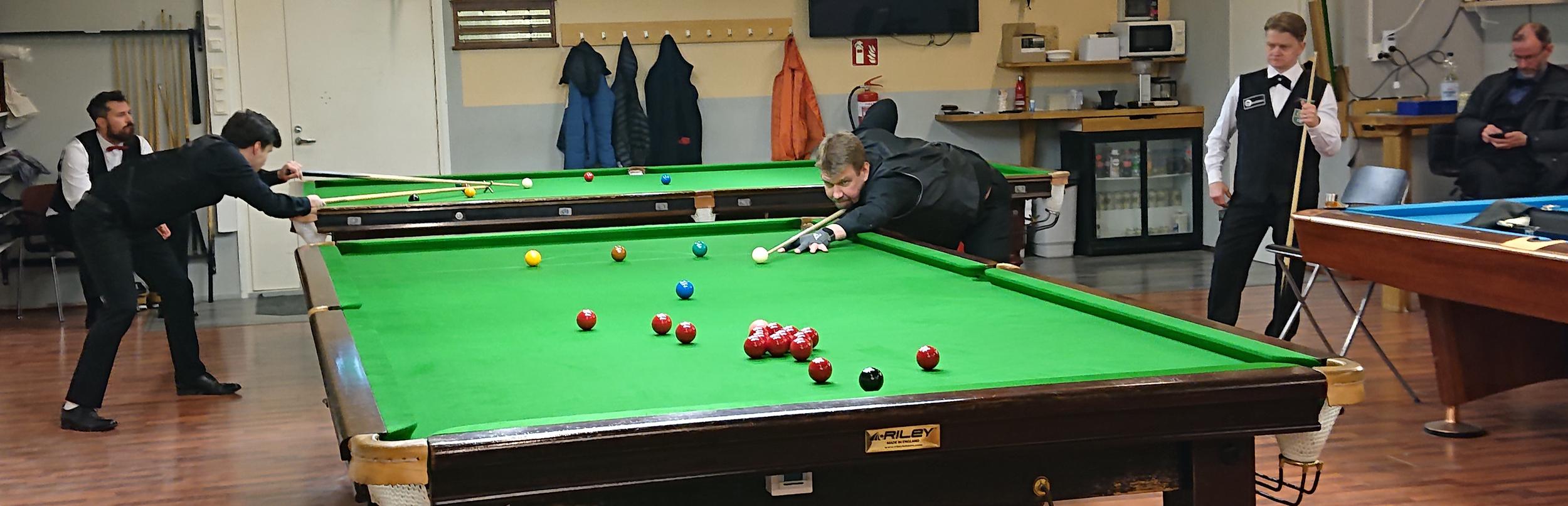 Perjantaina aloitettiin Snookerin SM-kisat Jyväskylässä, pelipaikkojen ollessa Jyväskylän biljardiseuran tilat sekä Jyväs-snooker. Jyväskylän biljardiseuralla oli tehty veran vaihdot kahteen pöytään keskiviikkona ja torstaina, joten näistä asioista ei pelaaminen jäänyt kiinni.