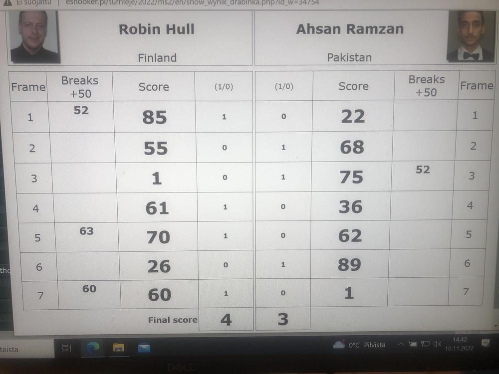 Robin Hull 4-3 Ahsan Ramzan (Pakistan)