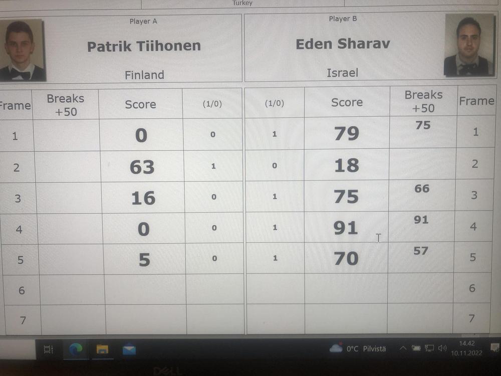 Patrik Tiihonen 1-4 Eden Sharav (Israel)