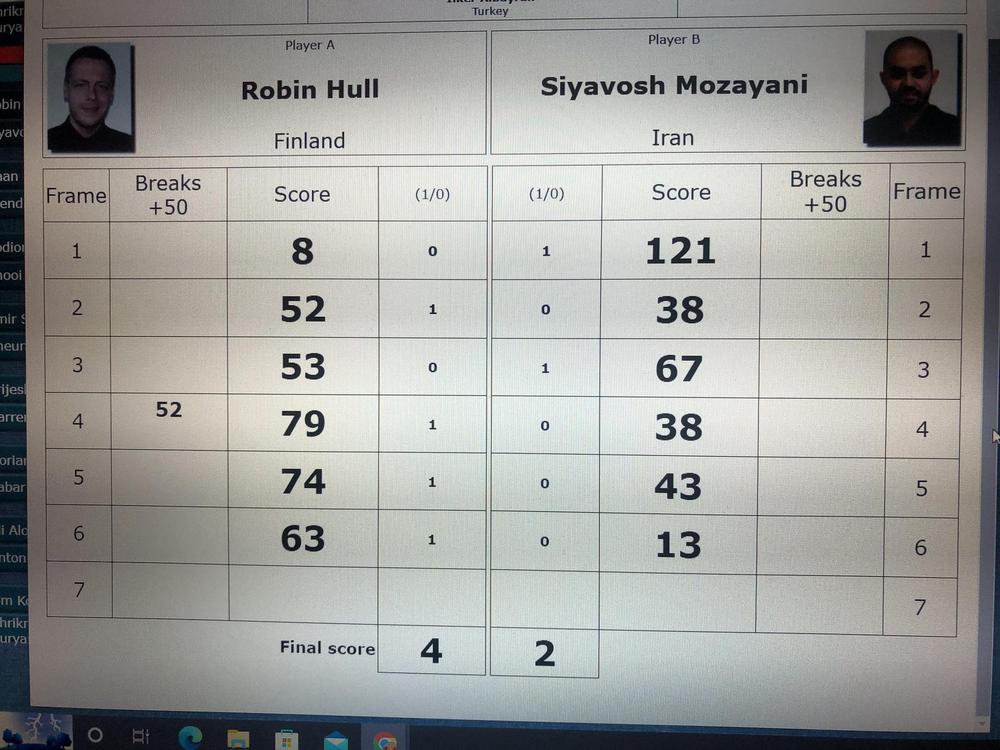 Robin Hull 4-2 Siyavosh Mozayni (Iran)