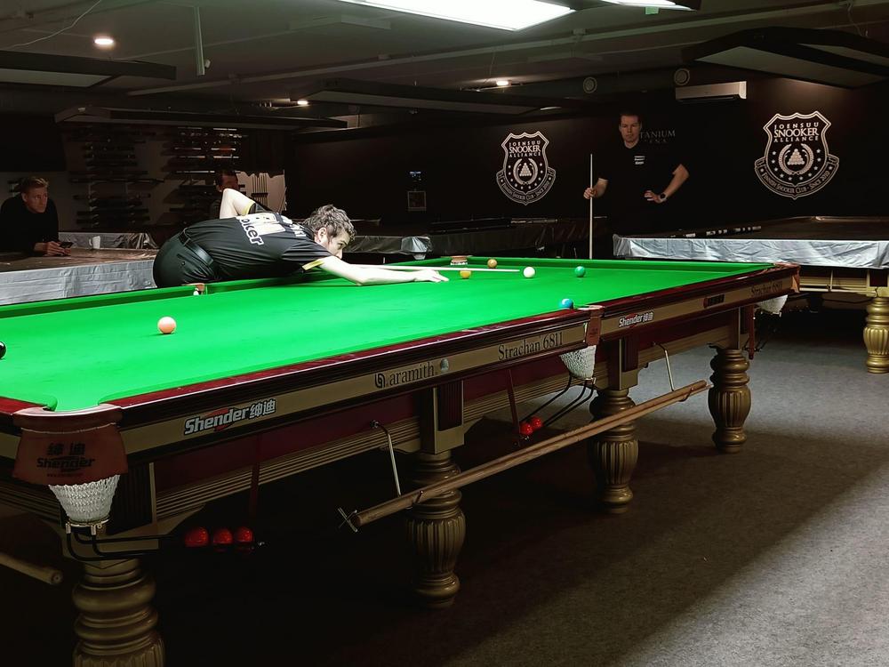 Ykkössijoitettu Kajaanin Mika Karjalainen joutui heti avauspelissään tiukoille paikallisen seuran Ville Räsästä vastaan. Ville meni ottelussa jo 2-0 johtoon pelaten hienoa snookeria, tehden mm. 1. frameen tyylikkään putsin loppuun. Karjalainen pystyi kuitenkin nousemaan lopulta 3-2 voittoon hämmästellen jälkikäteen, kuinka kova vastus avauskierroksella jo oli vastassa.