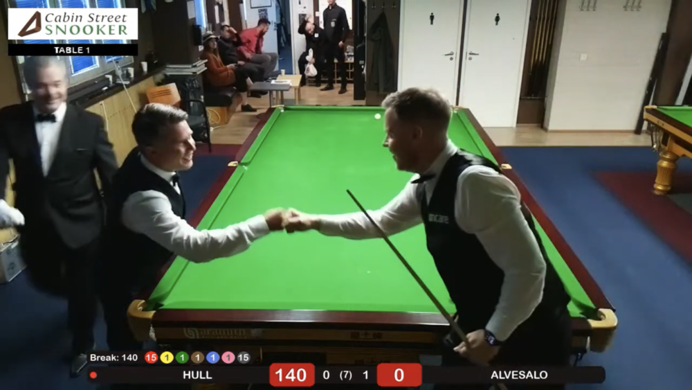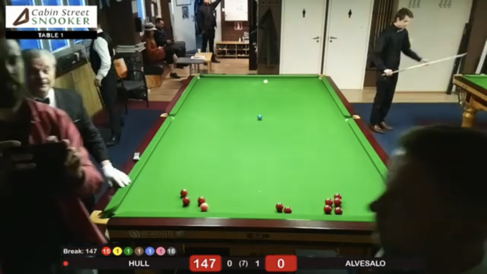 Lauantai-iltana Cabinilla alkoi varsinainen lyöntisarjojen ilotulitus. Ensin konkareiden välisessä ottelussa Esa Kaikumaa - Petri Ahola, Petri sai todistaa Esalta kisojen ensimmäistä century-breikkiä tasan 100. Heti perään viereisellä pöydällä ottelussa Robin Hull - Lasse Alvesalo tuomarina toiminut Klasu sai ilon ja kunnian nostella palloja, kun nähtiin sm-kisahistorian ensimmäinen snookerin maaginen maksimibreikki 147 Robinin kädestä.