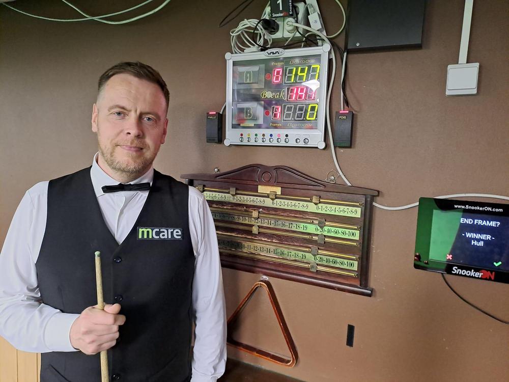 Suomen mestari 2023 on Robin Hull, jälleen kerran, pelin jälkeen tulostaululla Robin 4-1 Heikki.