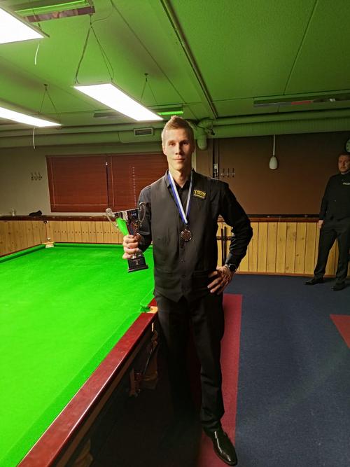 Heikki käänsi lopussa pelin itselleen upealla 64 breikillä, mustaa ei tarvinnut lyödä, Heikki finaaliin, loppulukemat Patrik 3-4 Heikki.