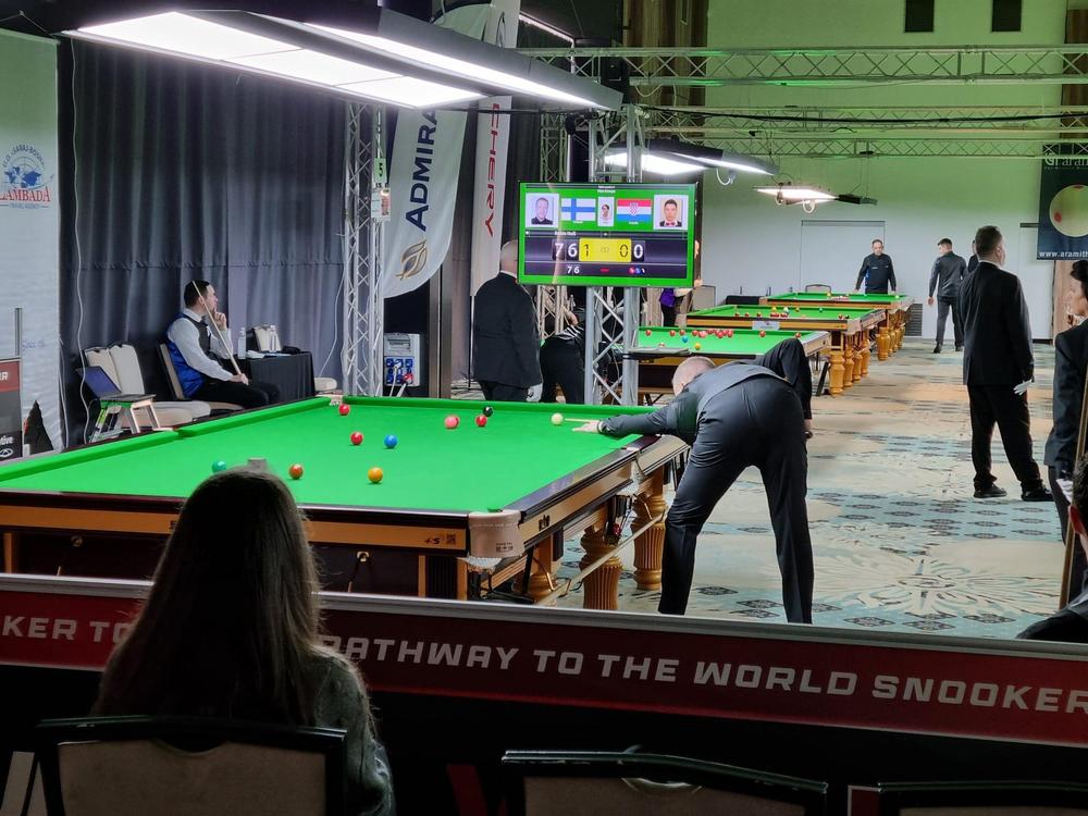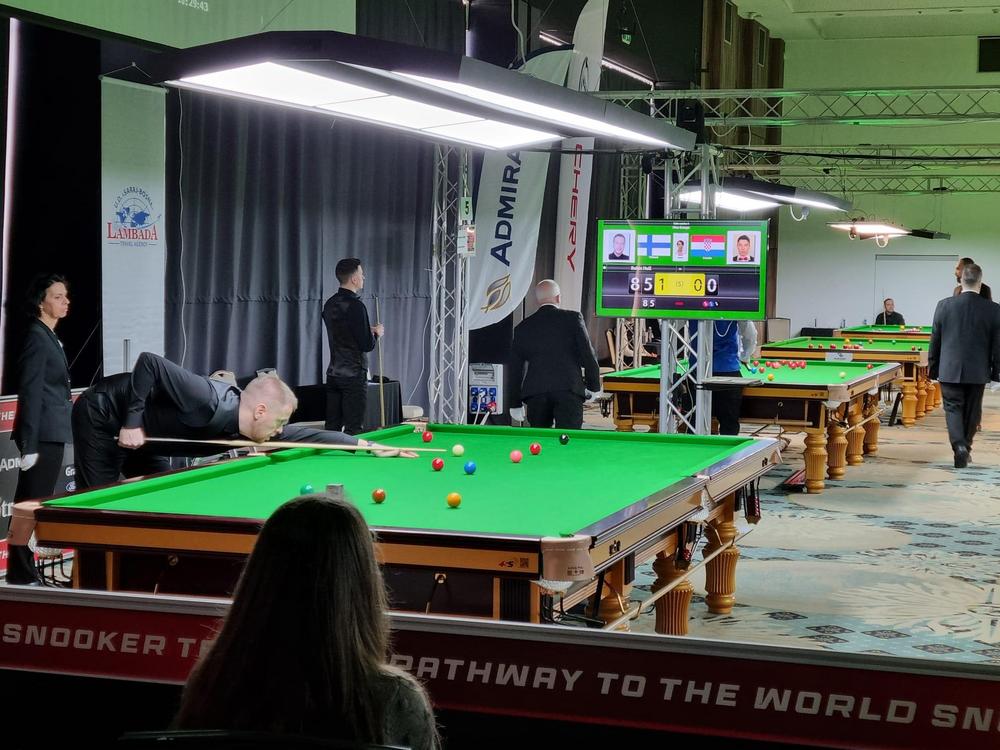 3. erä: Robin teki alkuun 30p, mutta punainen ohi keskipussiin. Kroatialainen Tin Venos nousi 44-31 johtoon kolmella pikkusarjalla ja teki pahan snookerin, josta Robin löi kolme missiä. Robin yritti lopussa tehdä snookereita, mutta erä kroatialaiselle 87-47.