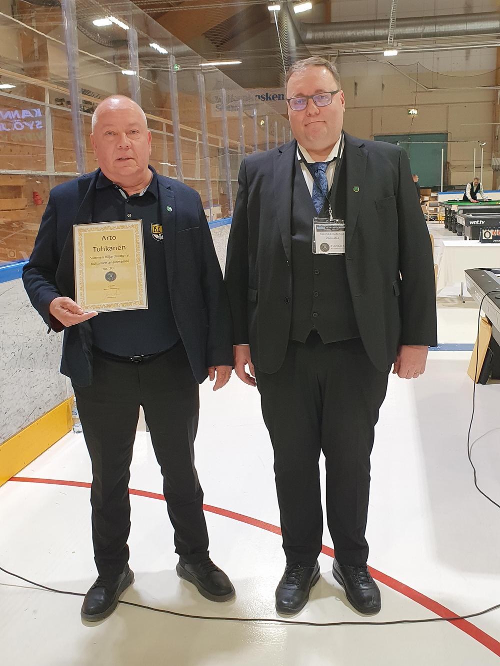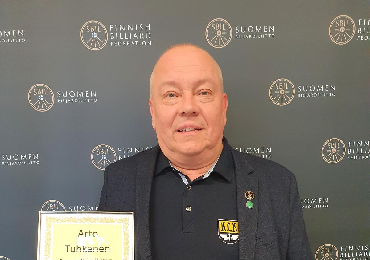Biljardiliiton kultainen ansiomerkki no 30 on myönnetty Arto Tuhkaselle.