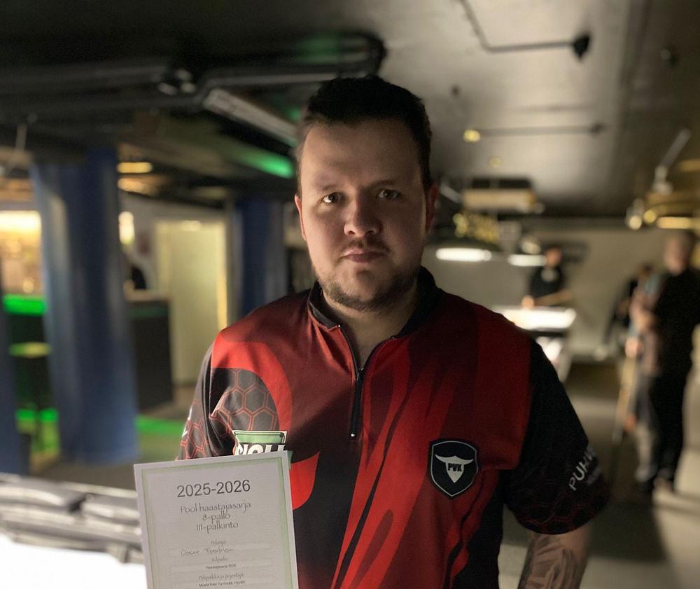 8-palloa pelattiin Hyvinkään haastajasarjan osakilpailu tänä viikonloppuna ja voittajaksi pussitteli Pirkkalan Joel Kari joka päihitti finaalissa Hämeenlinnan Juhani Koivumäen suoraan lukemin 4-0. Semifinaalissakaan Karilla ei ollut juuri hätää sillä sen GU:n edustaja nappasi itselleen lukemin 4-1 Helsingin PVK:n Oscar Forsblomista. Semifinaaliin asti ylsi myös Riihimäen Marko Myllymäki joka hävisi pääsystä finaaliin kamppailun vain niukasti 3-4. Turnaukseen osallistui 36 pelaajaa.