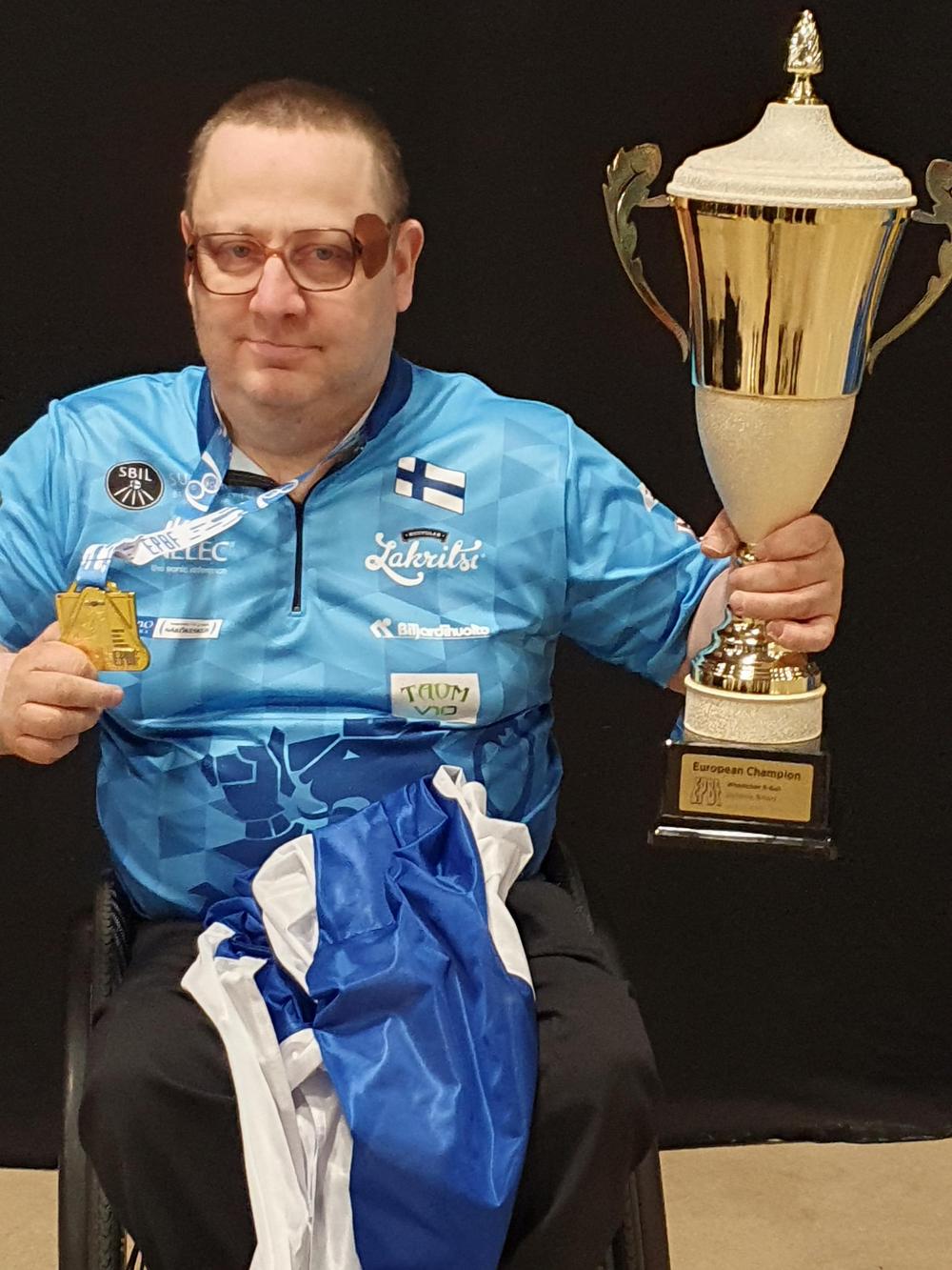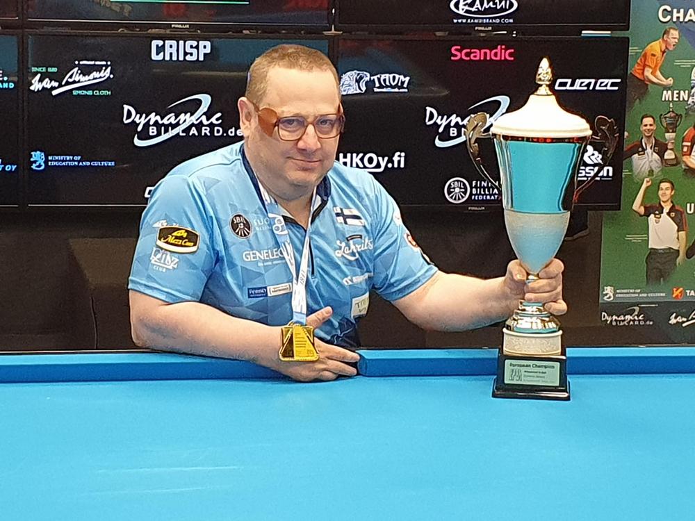 Suomi saavutti Tampereelta toisen EM kultamitalin, kun kaarinalainen Jouni Tähti pelasi pyörätuolisarjassa 8-pallon ykköseksi. Vastustajana ollut Ruotsin Henrik Larsson kukistui erin 5-2. Tähden meriittilista on huikea, tämä ykköstila oli jo hänen 30. Euroopan mestaruutensa! Ja muita EM mitaleita on myös joitakin kymmeniä sekä tietysti aikaisemmilta vuosilta 5 MM kultaa.