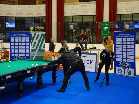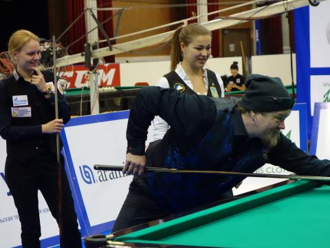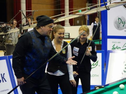 Lauantai aamupäivä sai mukavan aloituksen kun supersuosittu näyttelijä Ville Haapasalo pääsi kokeilemaan pyramidibiljardia maailman parhaiden naispelaajien kanssa.