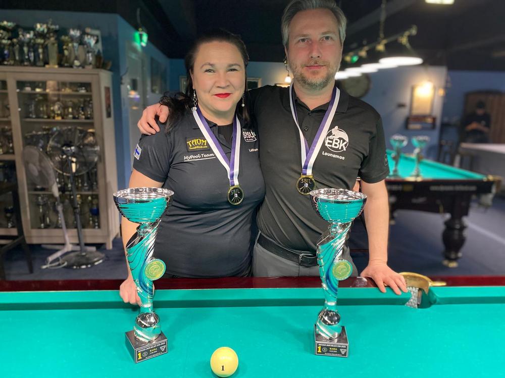 Suomenmestareiksi pelasivat vakuuttavasti parivaljakko Sari Laitinen (MPT) ja Joonas Lounamaa (EBK). Kolmannen kierroksen tappion jälkeen he pelasivat viisi perättäistä ottelua vastustajiaan paljon tehokkaammin ja aina päätyyn asti SM-kullan arvoisesti. Semifinaalissa Laitinen & Lounamaa voitti Jenna Jokisen (HyvBK) & Ville Hämäläisen (PGL) 60-16 ja upottivat perään makoisassa revanssissa eli finaalissa Jenny Moilasen (HyvBK) & Ville Pasasen (HBK) myös melko selkein numeroin 60-18.