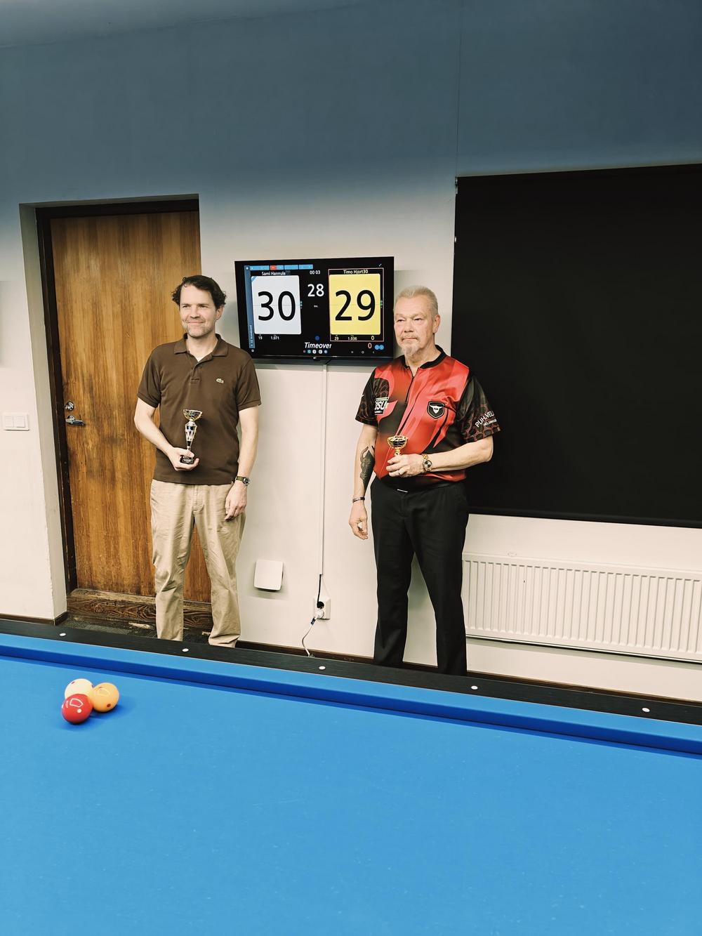 Hannula voitti yhtä täpärästi myös semifinaalissa vain yhden karan erolla kauden avauskilpailun voittaneen Jarno Aholan. Tuo semifinaali päättyi 13-12 ja vastaavasti Hjort kukisti itse kisaisännän Toni Hannulan toisessa semifinaalissa 19-15.