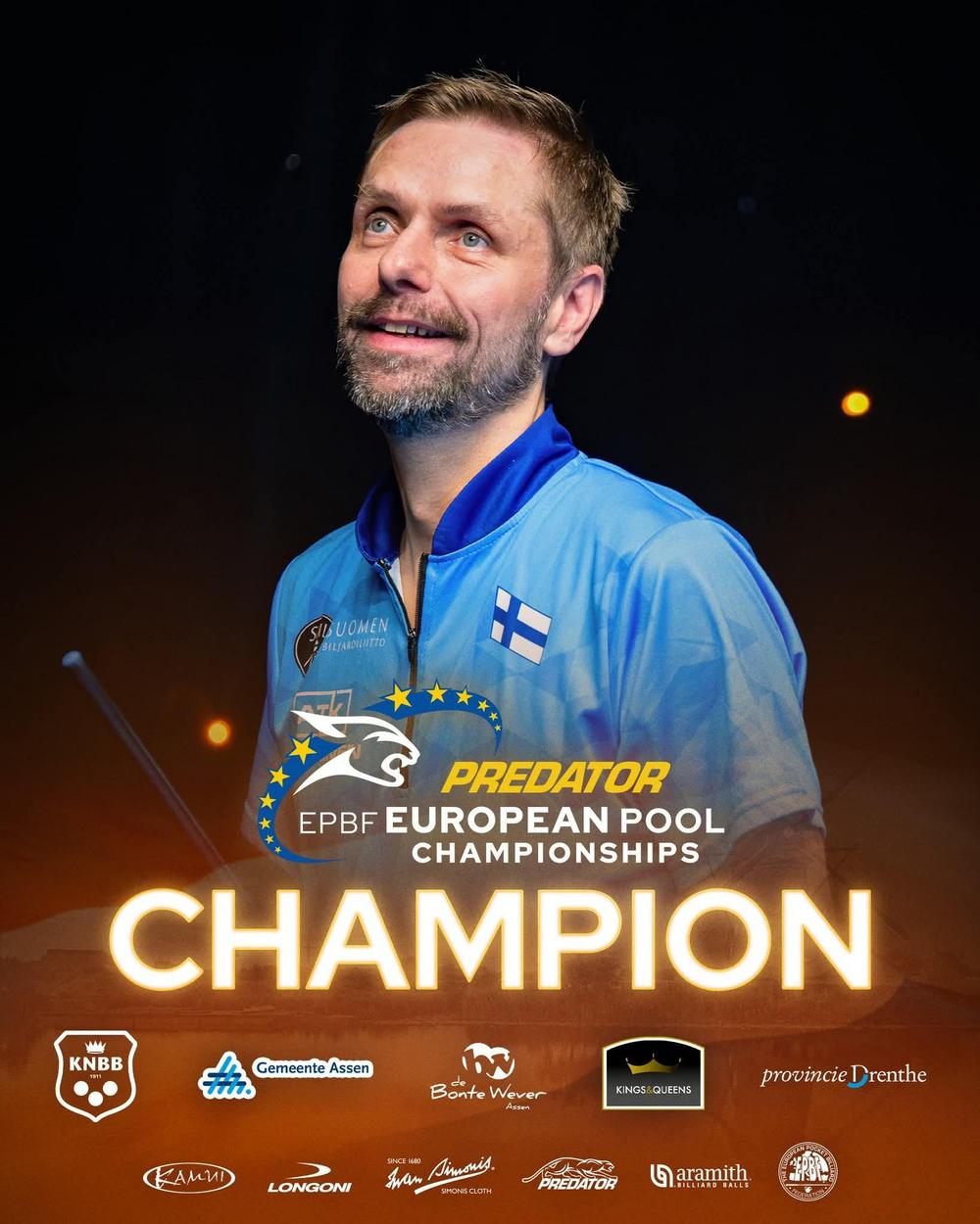 Senioreiden poolin EM-kilpailut Hollannin Assenissa sai upeaa suomalaismenestystä maanantai-iltana 6.10.2025, kun Valtteri Virtanen kohosi korkeimmalle korokkeelle 8-pallon 45+ senioreiden EM-finaalin jälkeen. EM-finaalissa Virtanen päihitti Italian Andrea Grossonin luvuin 7-4.